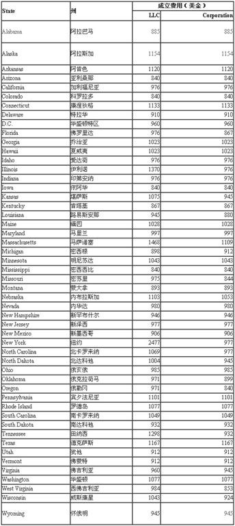 (2)上述報價只適用公司名稱不含中文或沒有中文名稱的公司。中文公司名稱另加800美元。