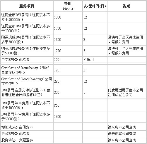 (1)上述收費只適用于註冊資本不多于50,000美元的公司。如您擬註冊一家註冊資本多于50,000美元的公司,請致電本公司查詢