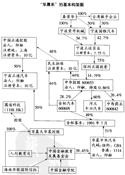 “華晨系”非常復雜,除了5家上市公司,還包括一系列的非上市公司且股權交錯,初看“令人一頭霧水”;其主要構架圖見下圖: