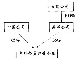 在這種結構下,該西方風險投資公司轉讓在中外合資企業中擁有的35%股權時,只需要把離岸公司的股權賣給收購公司,雙方只須簽訂一份有關離岸公司的股權轉讓合同即可。股權轉讓合同生效后,收購公司就成了中外合資經營企業的35%股權的實際擁有人,如下圖所示: