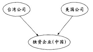 一家臺灣的公司與一家美國公司商談在中國設立一家獨資企業,如果采用直接進入中國的辦法,則公司架構如下圖所示: