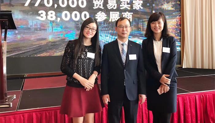 史月及王欣茹女士與香港貿發局曾代表合影