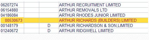 您可以在Company Name后的空格內輸入您要查找的公司名,如:ARTHUR RICHARDS (BUILDERS) LIMITED,然后點擊 SEARCH,您便可以看到以下內容
