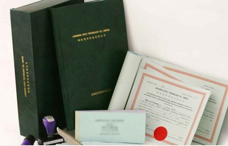 公司註冊證書(正本);商業登記證(正本) ;公司章程;法定記錄簿一本;公司小圓章、鋼印、條形章各一枚;股票簿一本;存放上述物品的公司綠盒一個。